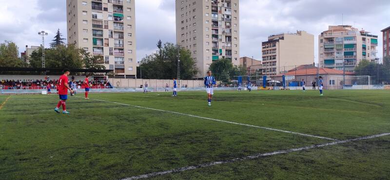 En los primeros 45 minutos ambos equipos salieron claramente a por los tres puntos, y eso se vió reflejado en el terreno de juego, los dos equipos fueron a por la portería contraria. En el minuto 28 tras un clarísimo fuera de juego no señalado por el colegiado, Adrià se plantó dentro del área y tras una defensa muy floja, consiguió adelantar en el marcador a los locales. Tras el gol, los parroquiales se fueron a por el empate, mientras que su rival se encerraba en su terreno de juego. En el minuto 35 en un contraataque de los de Dani, Zequi se plantó sólo dentro del área y el guardameta Mouad lo terminó derribando, el colegiado señaló penalti, y Adri desde los once metros consiguió la igualada en el luminoso. Ambos equipos siguieron insistiendo sin suerte. Pero al descanso se llegó con empate a uno.