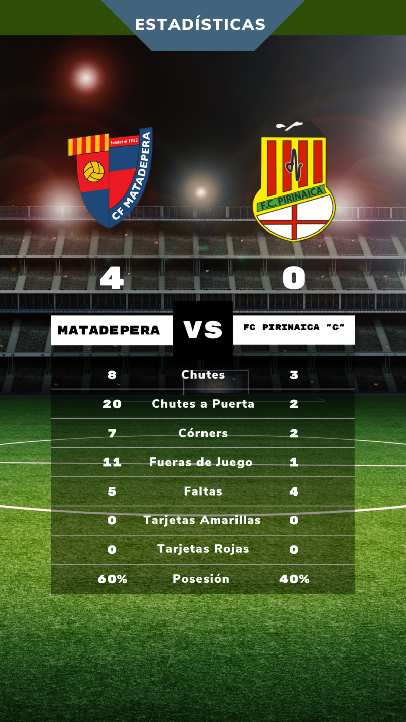 En el día de hoy en el Municipal de Matadepera, se ha dispuesto el partido correspondiente a la Jornada 21 de 4ª Catalana Grupo 14, que enfrentaba al Matadepera y a la Pirinaica, en un partido en donde los visitantes solamente entregaron diez fichas.