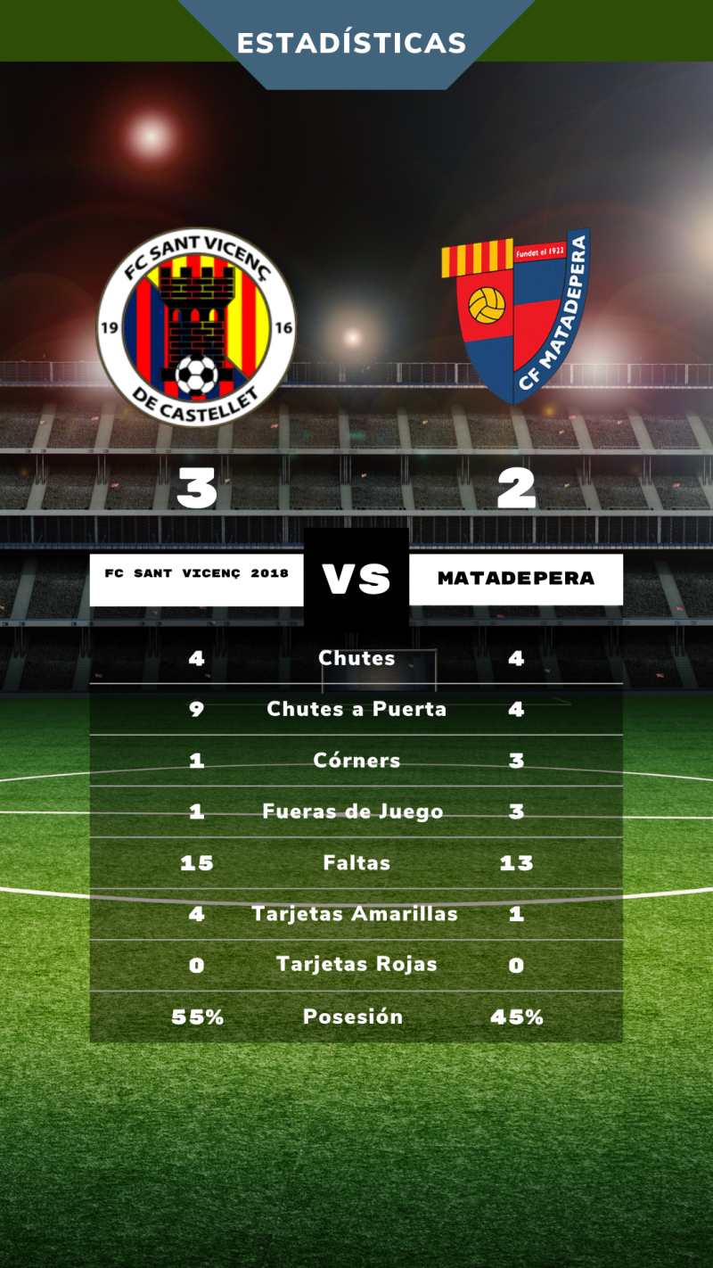 En el día de hoy en el Municipal de Les Roques, se ha disputado el partido correspondiente a la Jornada 30 de 4ª Catalana Grupo 14, que enfrentaba al Sant Viçenc y al Matadepera, en un partido marcado por los errores defensivos.