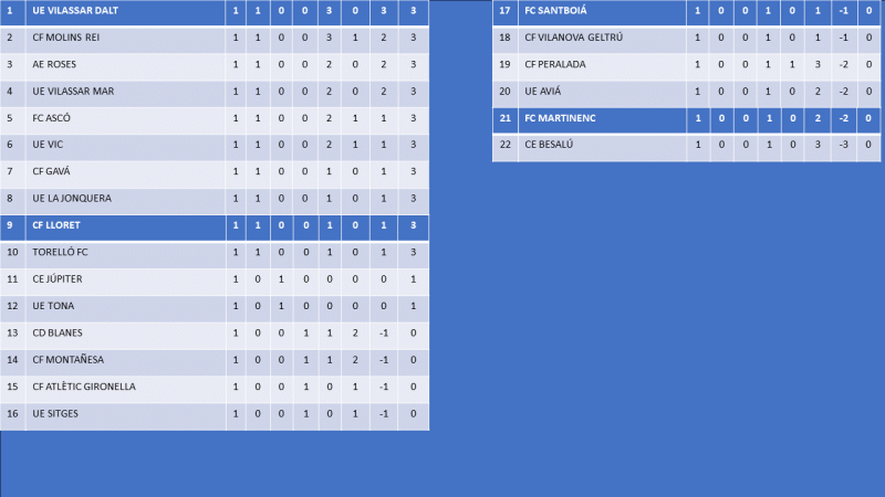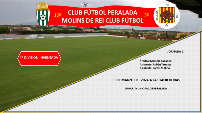 La primera mitad fue de dominio del conjunto del Peralada, que con un gran juego colectivo, no tardó mucho en dejarle claros a sus rivales que iban a sufrir mucho en defensa. Y así fue en el minuto 9, de las botas de Joan, pudo llegar el primero, pero el disparo fue atajado magistralmente por Iker. Los visitantes algo agoviados por el despliegue de sus rivales, comenzaron a dar balonazos, para alejar lo máximo posible la pelota de su área, mientras que los geroneses seguían triangulando pases para llegar al área rival. En el minuto 21 Santi tuvo una gran ocasión de gol, su lanzamiento se fue fuera. Todo apuntaba que los locales terminarían adelantandose en el electrónico, pero en el minuto 24, en el primer acercamiento de los barceloneses, llegó el primero, obra de Lluís, que consiguió batir de un gran lanzamiento a Arouca, que nada pudo hacer para eviatrlo. Este tanto enfureció aún más al Peralada, que se volcó sobre la portería de Iker, y en el minuto 33 Sergi pudo empatar, pero cuando lo tenía todo de cara disparó fuera. Antes del descanso en un contraataque, los del Molins pudieron sentenciar, pero el disparo de Osorio se fue al larguero. Tras esta ocasión se llegó al descanso con el marcador de 0 a 1.