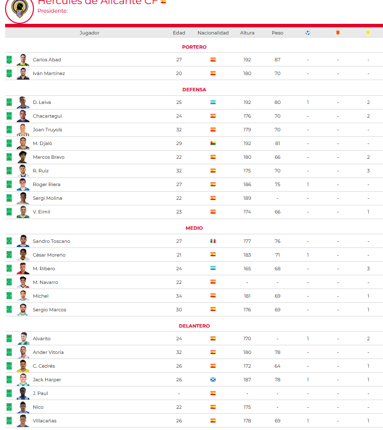 Plantilla Hércules de Alicante CF